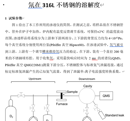 英文说明 : The solubility of deuterium in 316L stainless steel was measured at 350℃, 450℃, 550℃ and 600℃.