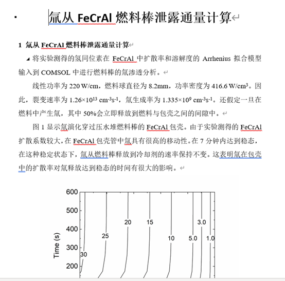 英文说明 : The tritium leakage flux from FeCrAl fuel rods was calculated.