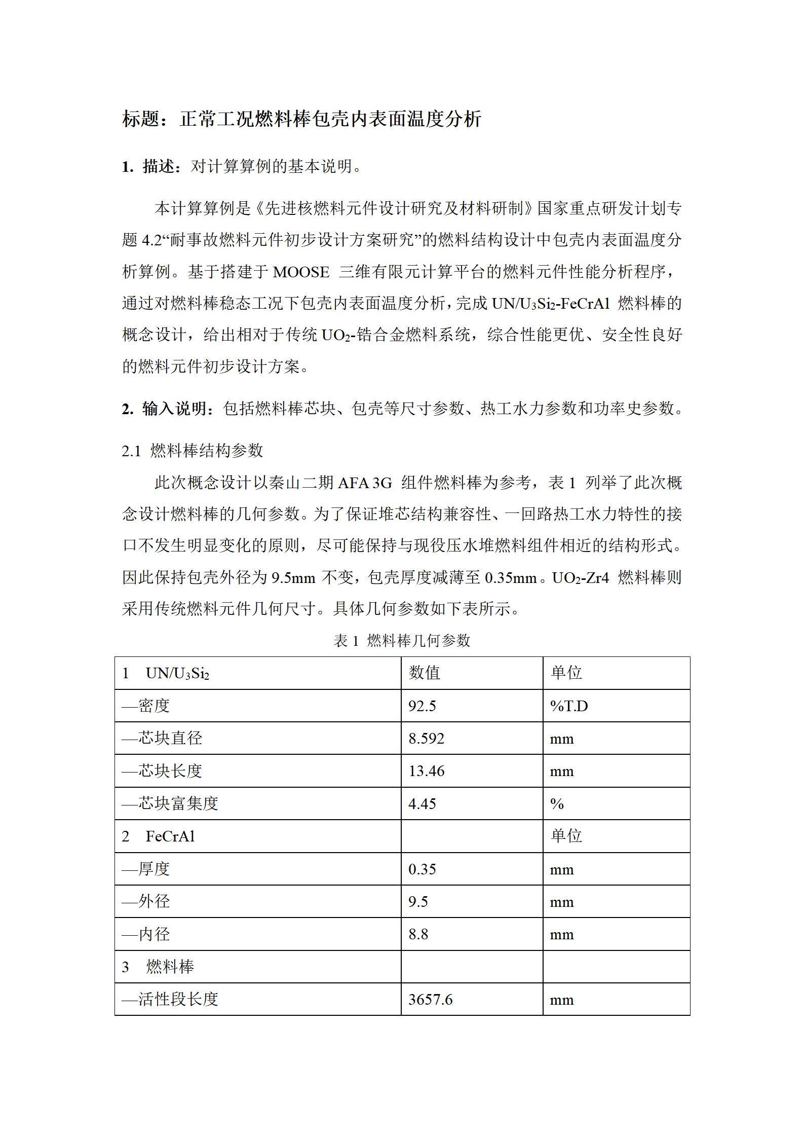 基于搭建于MOOSE 三维有限元计算平台的燃料元件性能分析程序,通过对燃料棒稳态工况下包壳内表面温度分析,完成UN/U3Si2-FeCrAl 燃料棒的概念设计,给出相对于传统UO2-锆合金燃料系统,综合性能更优、安全性良好的燃料元件初步设计方案。