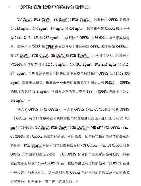 TV-DisW、PCB-CruW、SE-DisW和PCB-TherW中的颗粒相OPFRs总浓度为58.8 ng/m3、140 ng/m3、344 ng/m3和658 ng/m3;颗粒相含氯OPFRs浓度分别为21.6、84.2、153和237 ng/m3,占总颗粒相OPFRs的36-60%。