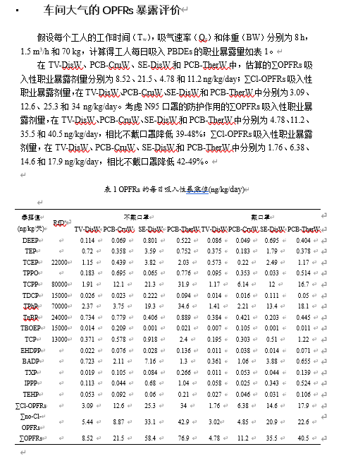 在TV-DisW、PCB-CruW、SE-DisW和PCB-TherW中,估算的∑OPFRs吸入性职业暴露剂量分别为8.52、21.5、4.78和11.2 ng/kg/day。