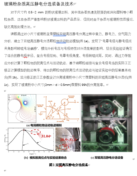 通过对小尺寸玻璃粉及微塑料双辊高压静电分离过程中重力、静电力、空气阻力分析,建立了双辊高压静电分选颗粒物运动轨迹模型。
