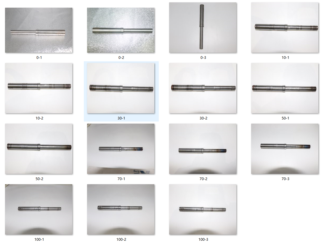 本条数据采用的设备为普通照相机。对实验之后的小尺寸试件进行拍照,对非配合表面损伤情况进行保留,通过其表面的损伤来判断其旋转次数。