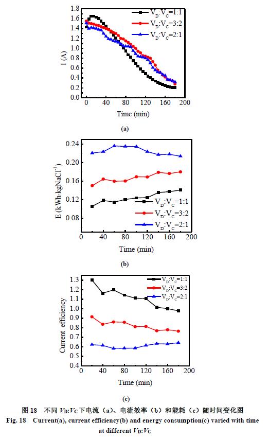 英文说明 : Current, current efficiency and energy consumption of electrodialysis varied with time at different VD:VC are investigated.