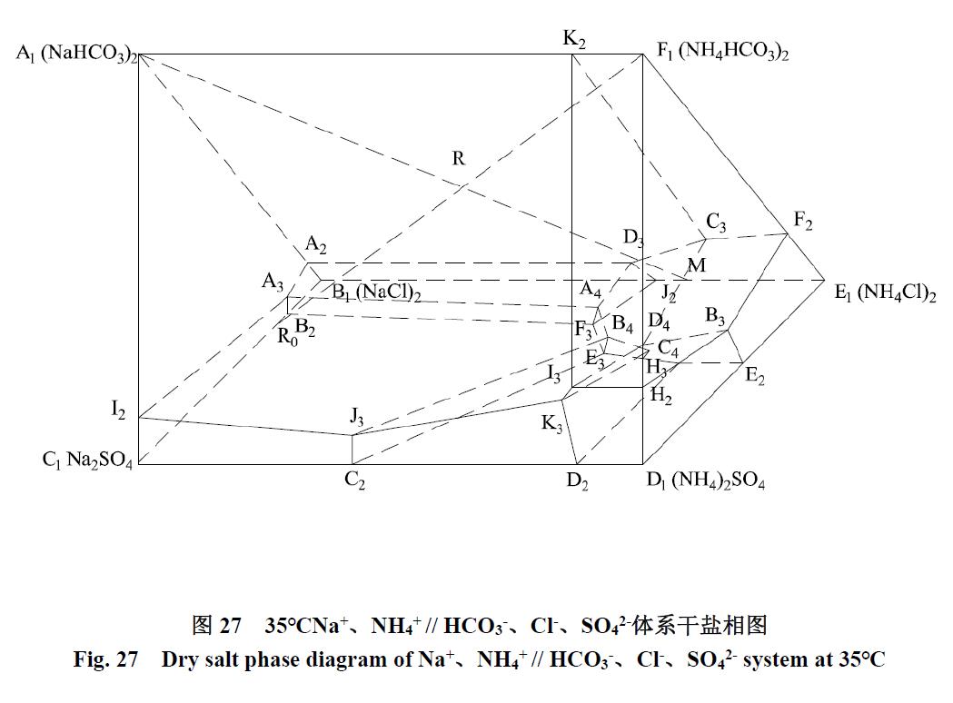 英文说明 : Dry salt phase diagram of Na+、NH4+//HCO3- 、Cl-、 SO42- system at 35℃ is measured.