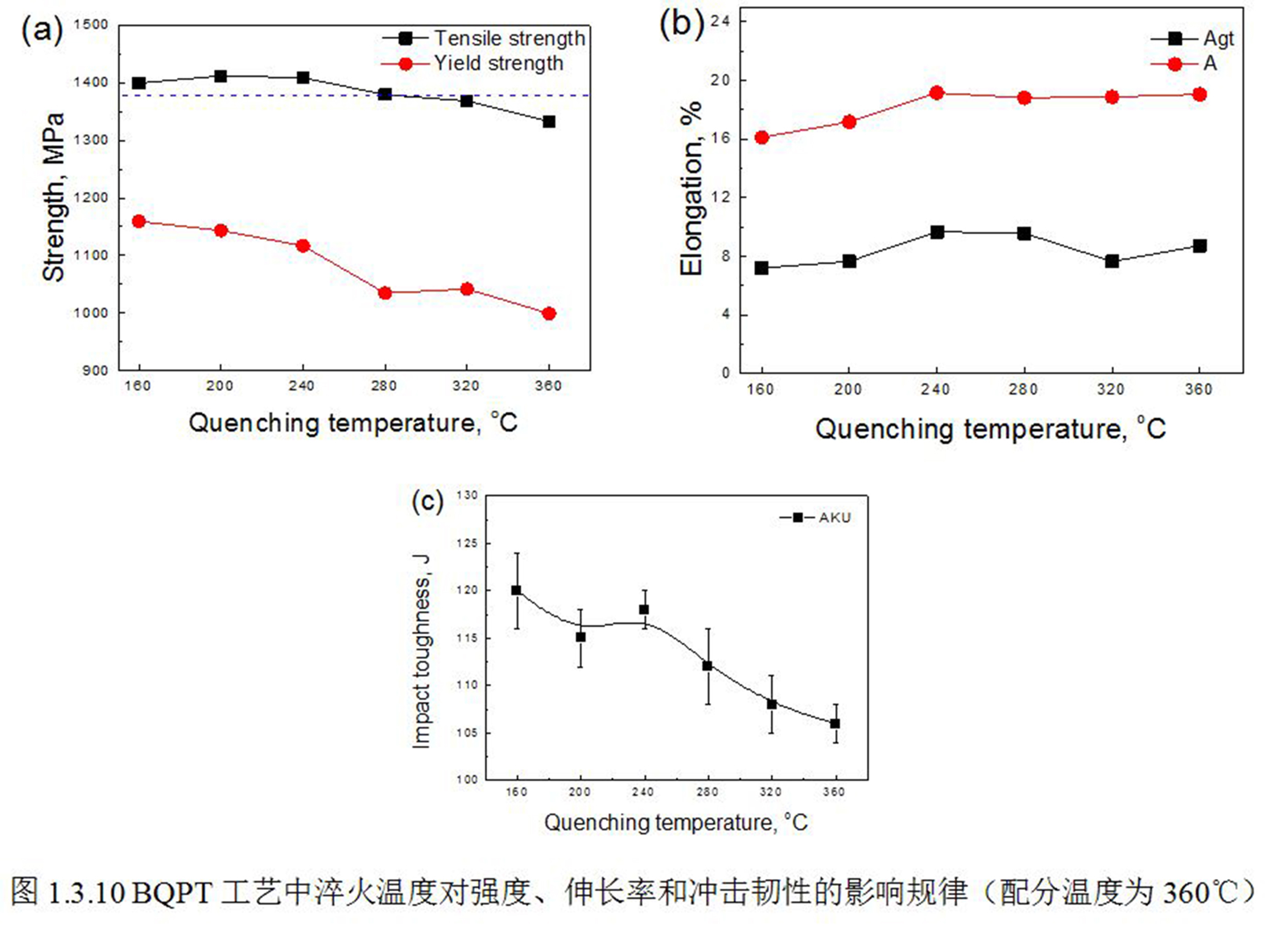 名称 : BQPT工艺中淬火温度对强度、伸长率和冲击韧性的影响规律