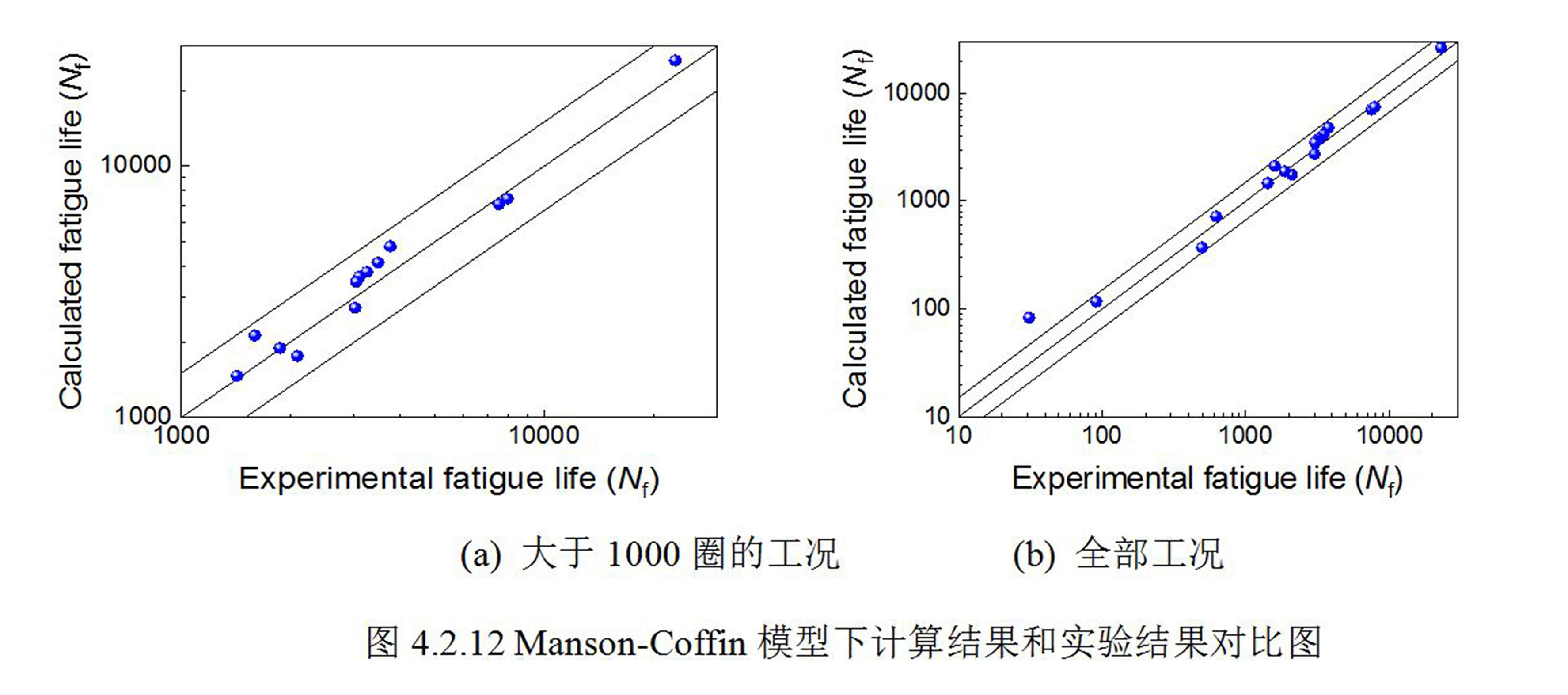英文名称 : Calculation results and experimental results under Manson coffin model