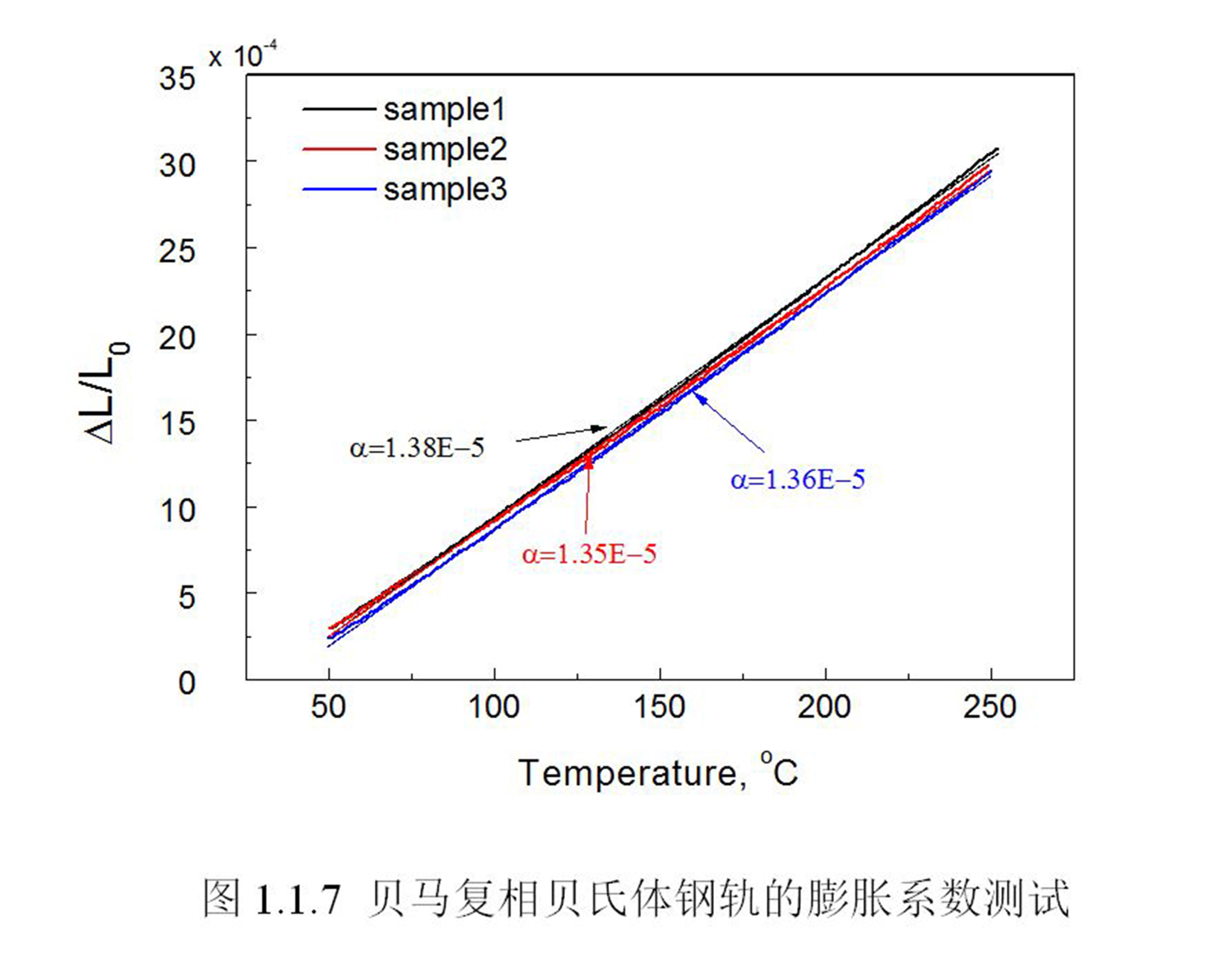 说明 : 给出了贝马复相贝氏体钢轨的膨胀系数测试结果。