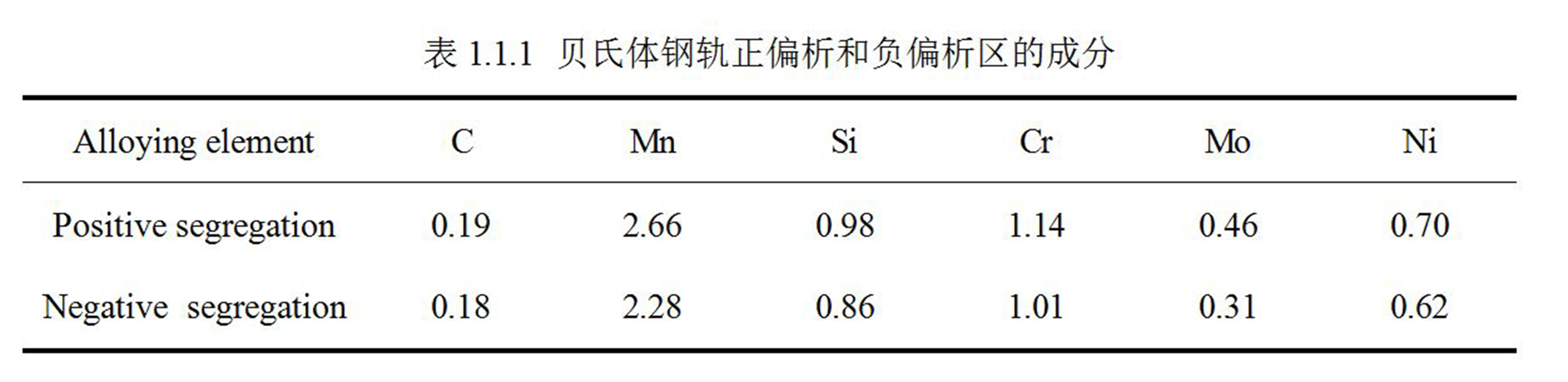 英文名称 : Composition of positive and negative segregation zone of bainite rail