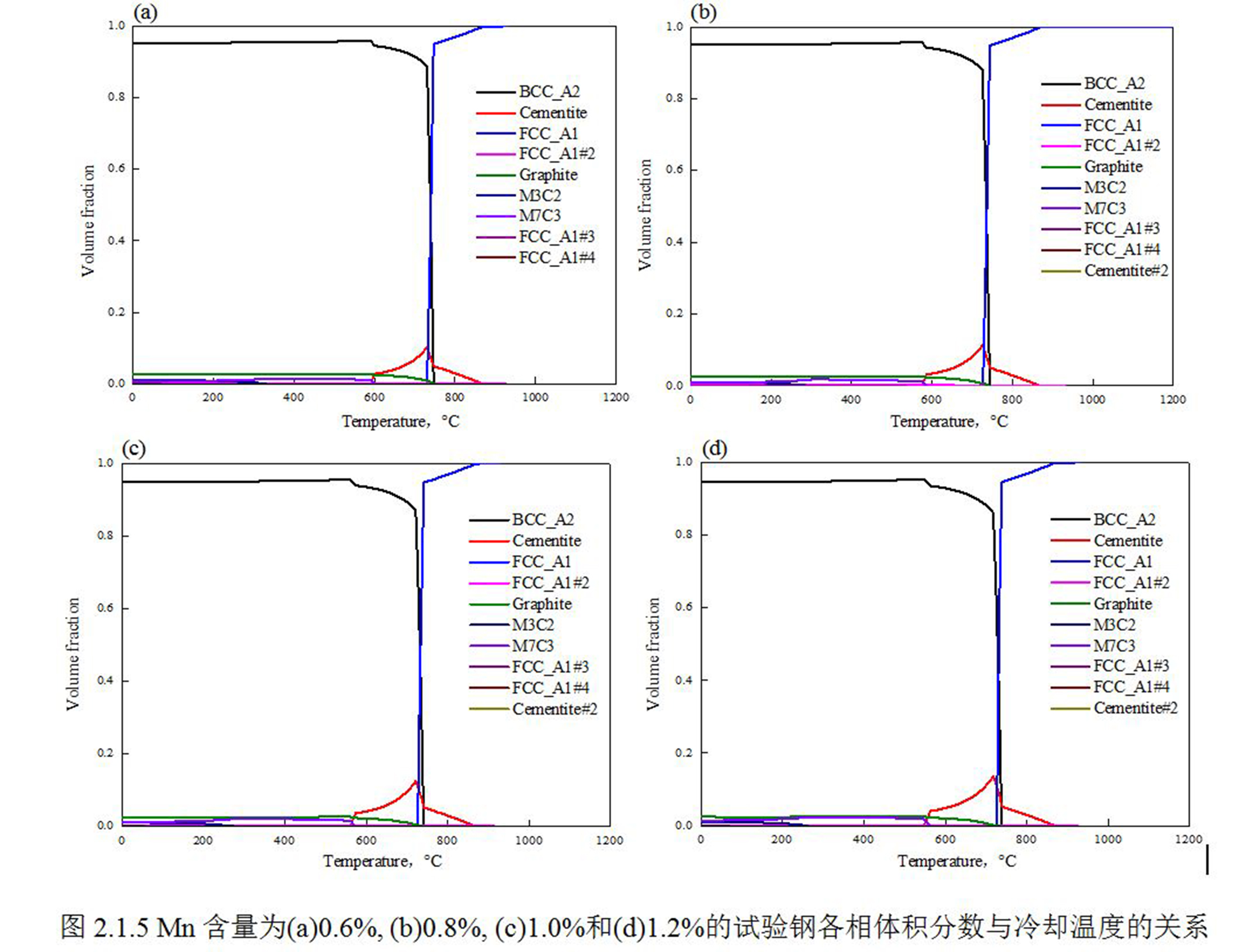 英文名称 : Relationship between phase volume fraction and cooling temperatureunder different Mn content