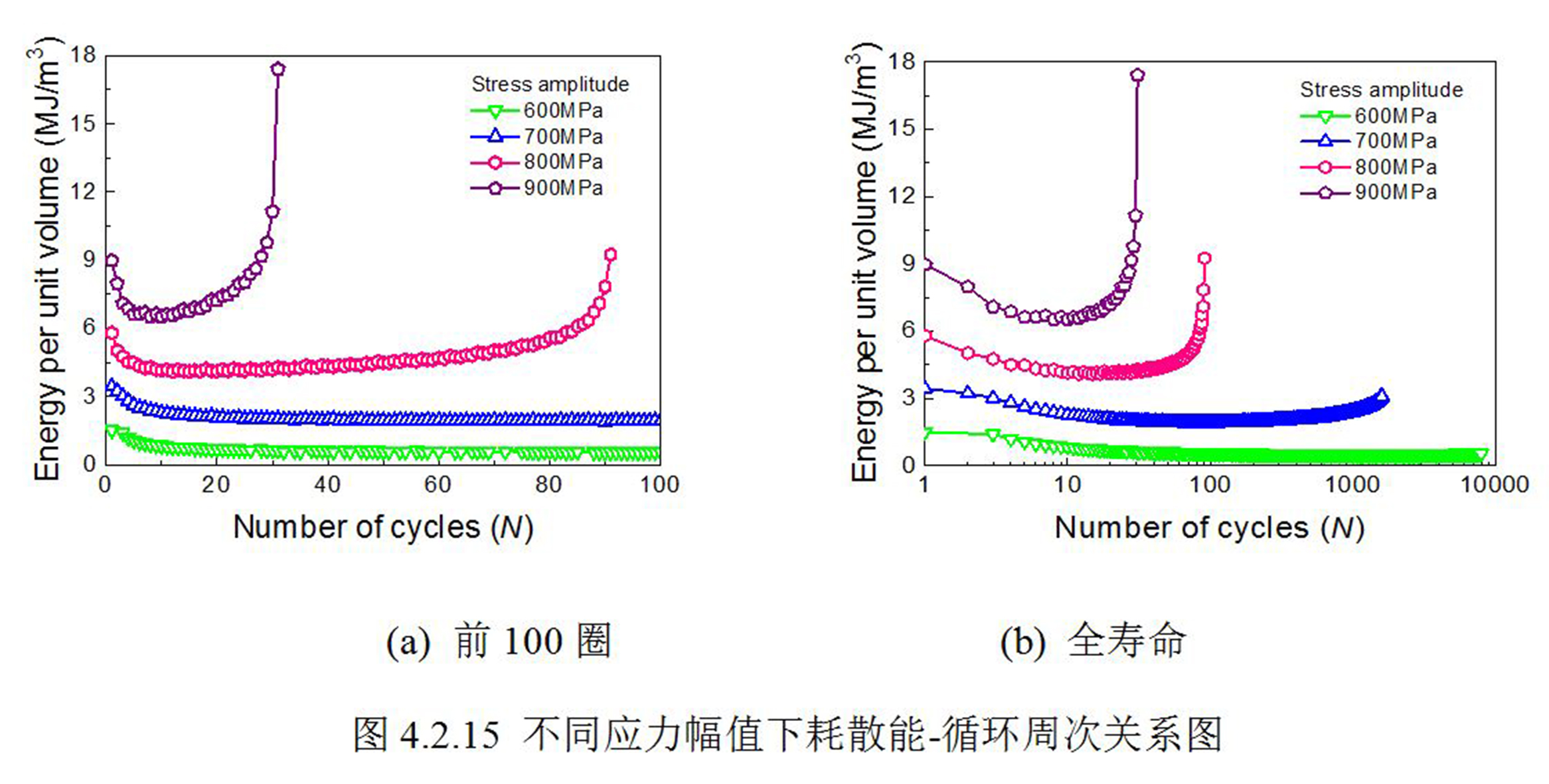 说明 : 描述了不同应力幅值下耗散能和循环周次的关系。