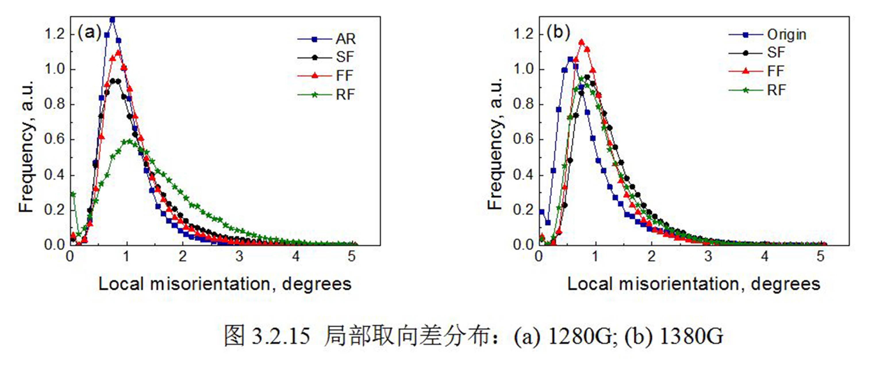 英文名称 : Distribution of local orientation difference of 1280g and 1380g test steels