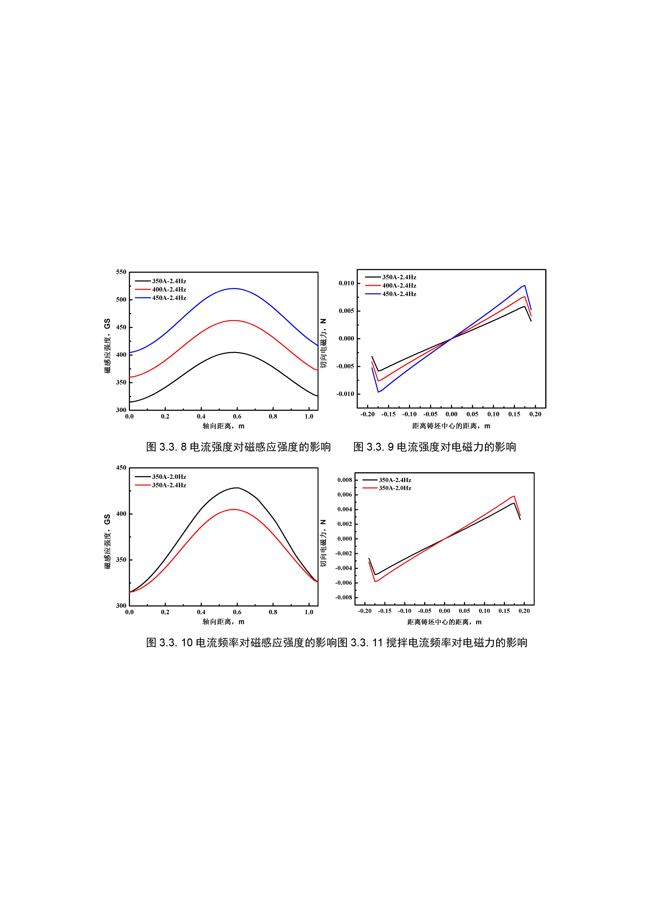 说明 : 描述了结晶器不同搅拌电流强度和电流频率对电磁场的影响。
