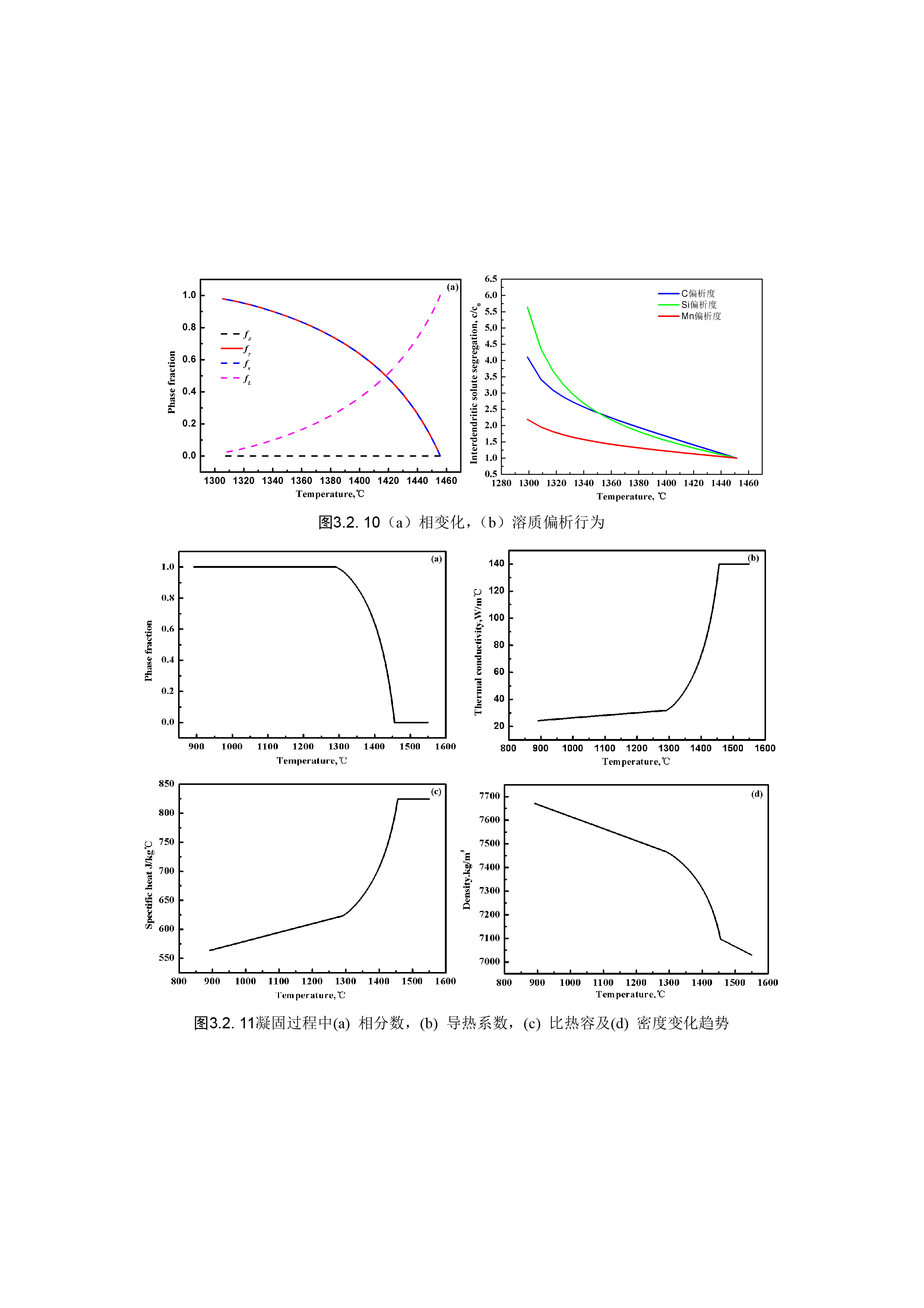 描述了凝固过程中相变化、元素偏析和相分数、导热系数、比热容、密度等高温物性参数的变化。