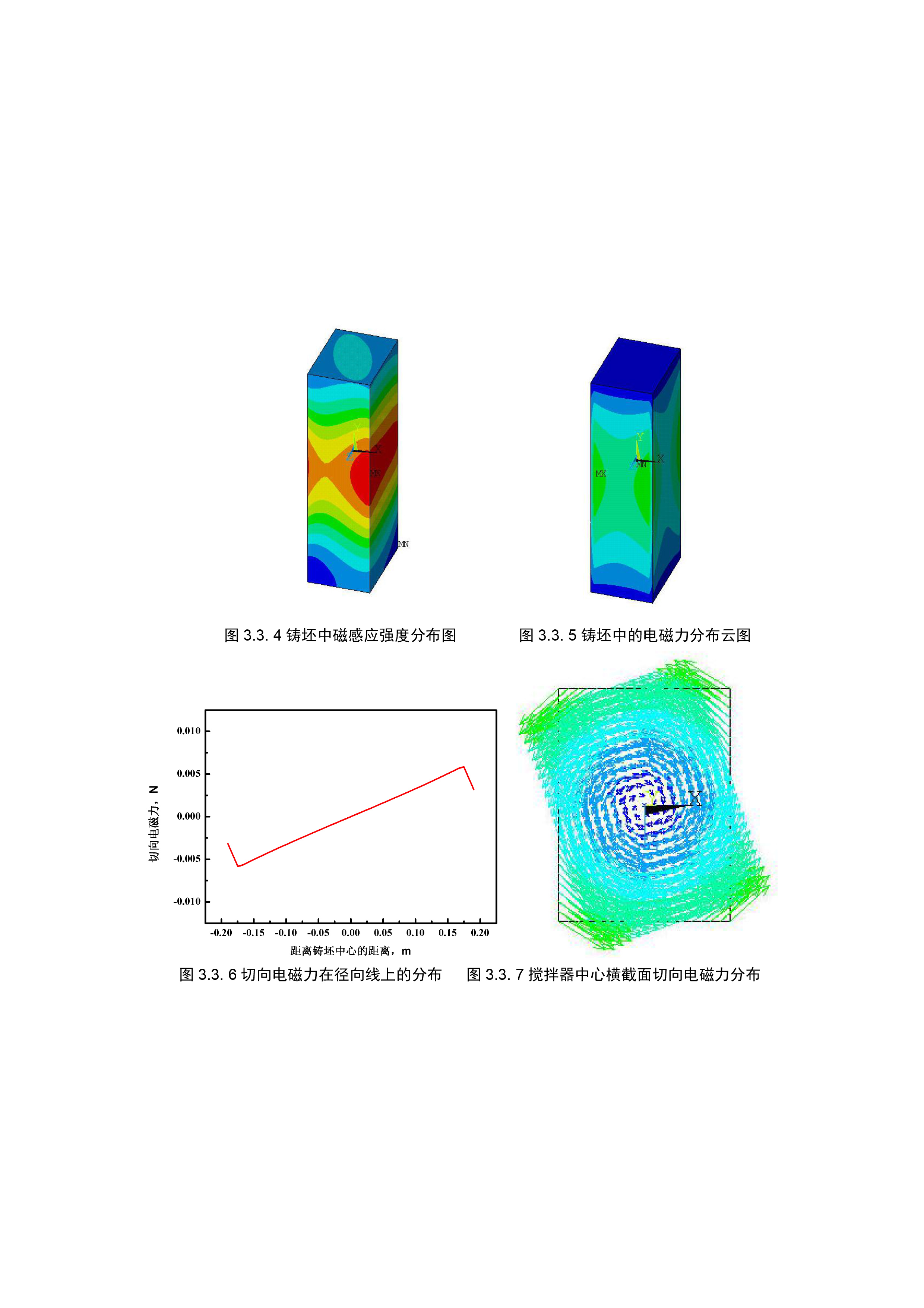 说明 : 描述了铸坯中三维磁感应强度、电磁力分布云图和切向电磁力分布。