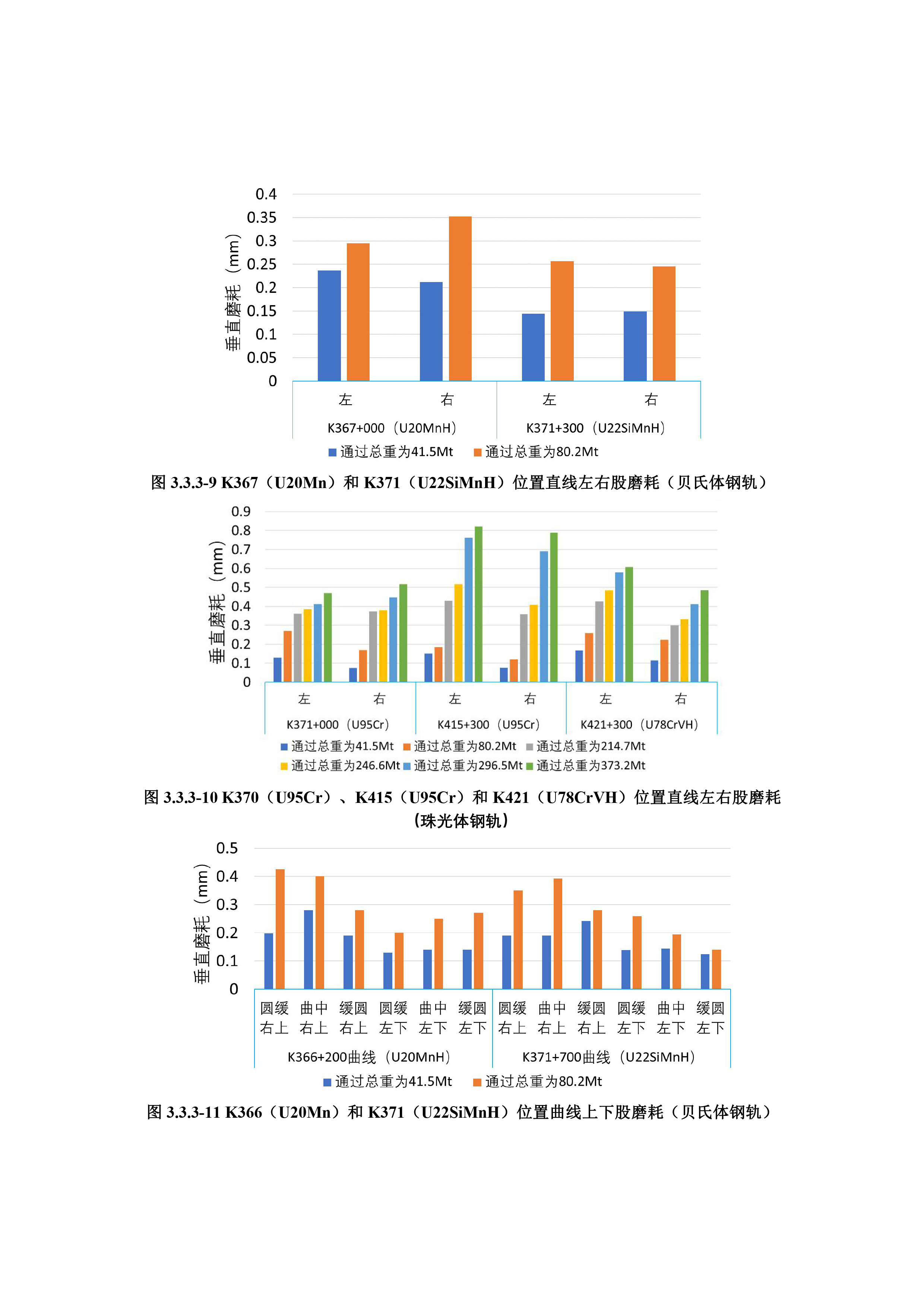 说明 : 给出了2020年大秦线铺设的过共析和贝氏体钢轨的磨服役情况。