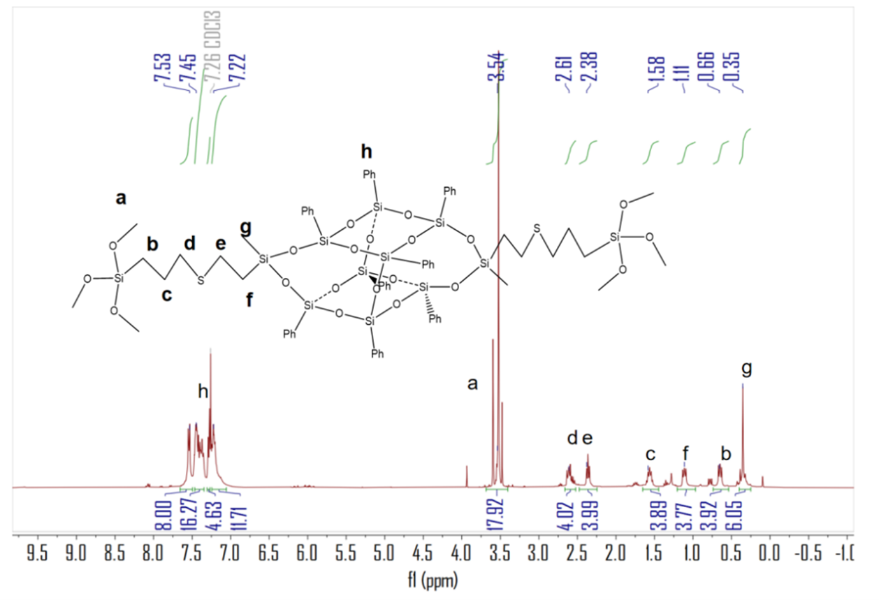 英文说明 : NMR hydrogen spectrum analysis of M-DDSQ
