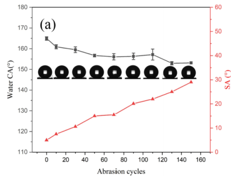 说明 : 耐磨损接触角分析,通过测磨损前后接触角,观察接触角变化,分析材料的耐磨损性能