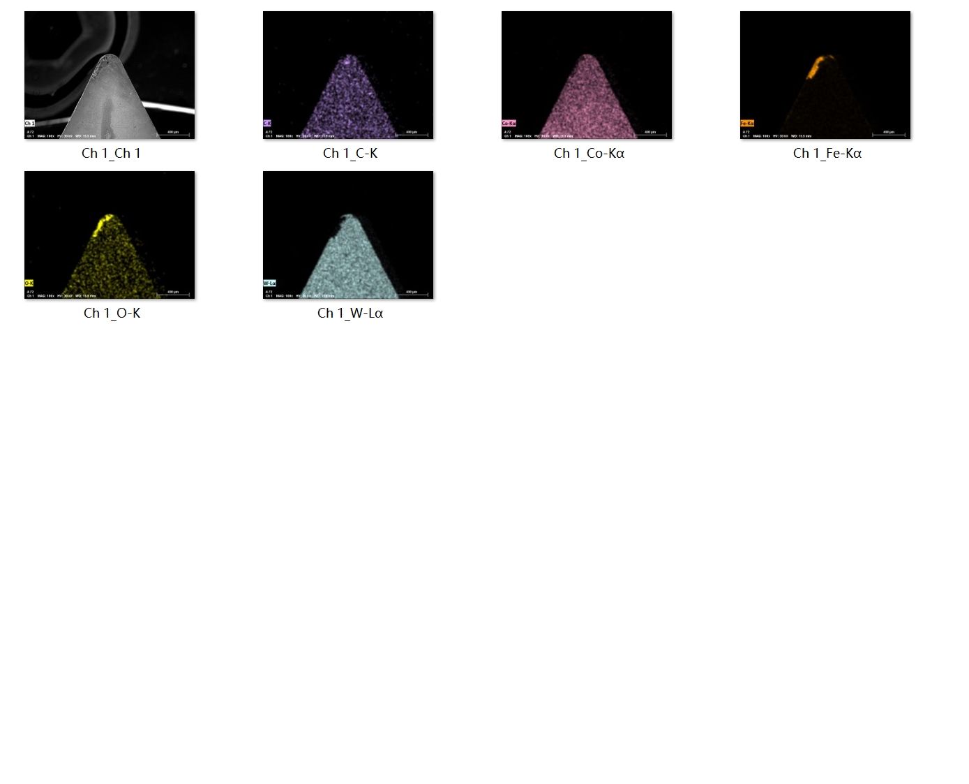 说明 : AlTiNbCrN层刀粒车削测试2h 未镀膜 俯瞰100倍率的EDS形貌