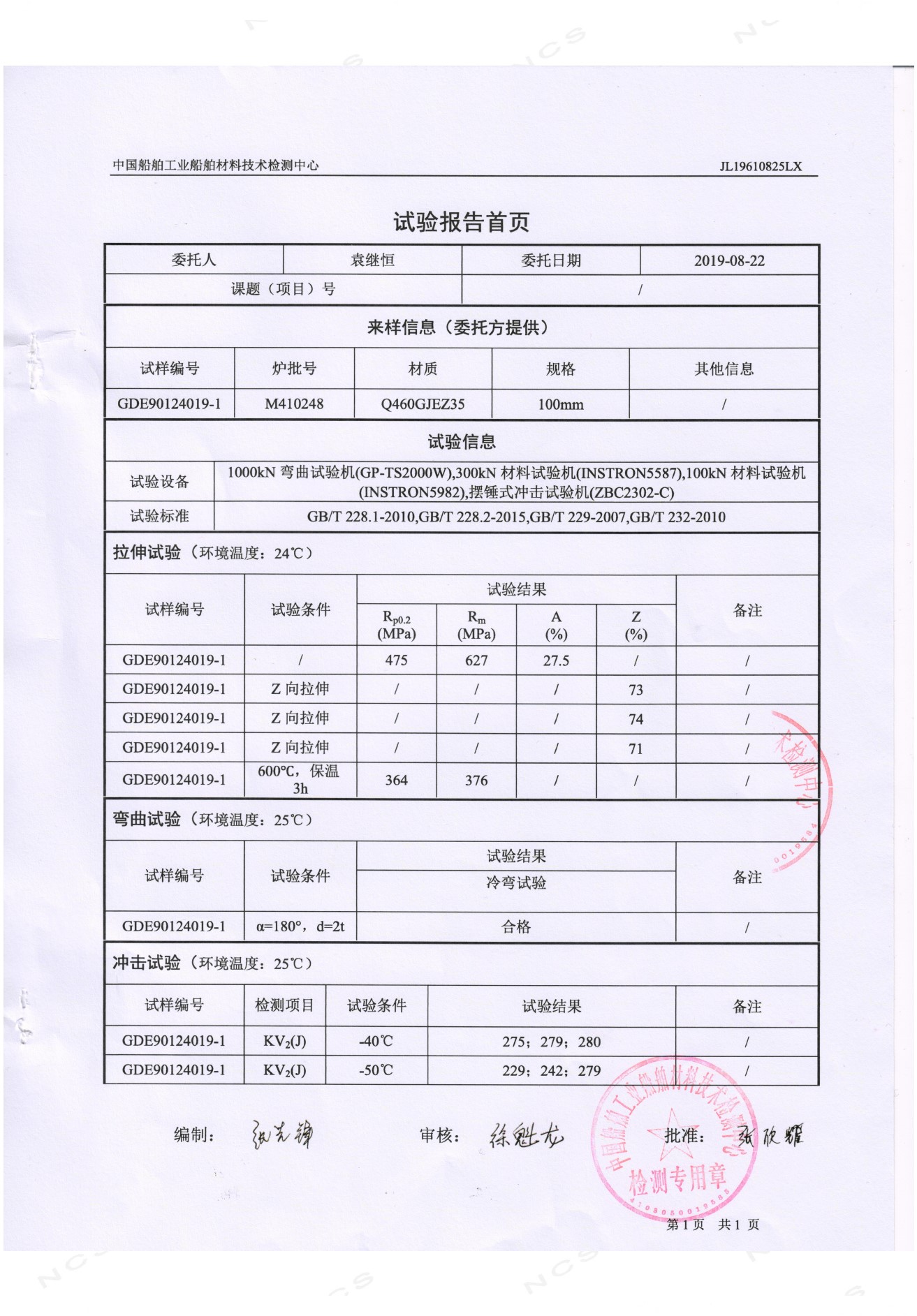 This data set is mainly used to test the tensile properties of the 100mm thickness hardened steel plate produced by Nanyang Hanye Special Steel Co., LTD., mainly to characterize the material's ability to fracture under room temperature, which is an important indicator of material strength. This test is to test the specimen under the condition of room temperature loading stress tensile fracture, expected to obtain a yield strength of not less than 460MPa good mechanical properties.