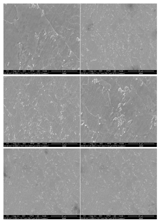 In this study, pre-grinding was carried out on a pre-grinding machine, and then water grinding was carried out on sand paper 150, 320, 600 and 1000 in turn. After mechanical polishing on a polishing machine, it was immersed in 4 mL HNO3 + 96 mL CH3CH2OH mixed solution for 15-25 s. FEI Quanta650 thermal field emission scanning electron microscope was used to analyze the shape, size and distribution of Bainitic ferrite. Recovery occurred in the bainitic ferrite matrix, MA island continued to decompose, and the matrix deformation was obvious.