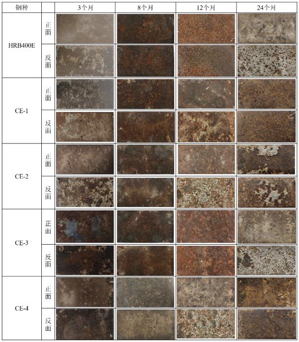 金属-钢筋-图片4-五种钢筋(HRB400E, CE-1,CE-2, CE-3, CE-4)试样在达叻海洋大气环境中腐蚀后的宏观形貌
