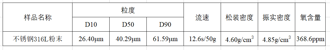 英文说明 : Stainless steel 316L powder comprehensive performance test results