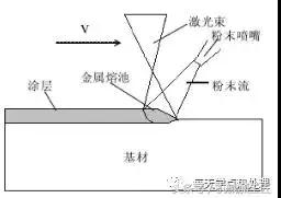 激光熔覆是一种重要的材料表面改性技术,它是指在基体表面以不同的添料方式放置被选择的涂覆材料,并利用高能量密度激光束使涂覆层与基材表面一起快速熔化的方法,而后快速凝固从而形成稀释度极低并且与基体形成良好冶金结合的表面涂层。按添料方式不同可分为预置式激光熔覆(如图1所示)和同步式激光熔覆(如图2所示)。激光熔覆既满足了材料表面对特定性能的需要,又节约了大量贵重金属。它具有稀释度小、精确度高、熔覆层与基体结合好、组织致密孔洞少、适合熔覆材料多样、粒度与含量变化大等优点。激光熔覆技术也十几年的发展已经显示出了良好的应用前景,但是在工业生产推广中也存在着设备一次性投资高、运行成本高、厚度较大涂覆层制备较难的制约因素。另外,由于激光熔覆温度过高,能够使增强颗粒发生分解,从而降低材料的耐磨性。
