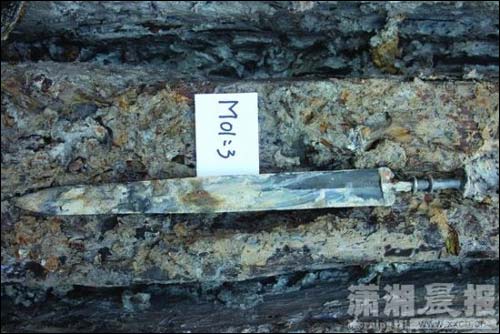 汨罗考古现场出土的青铜剑。图/李婷