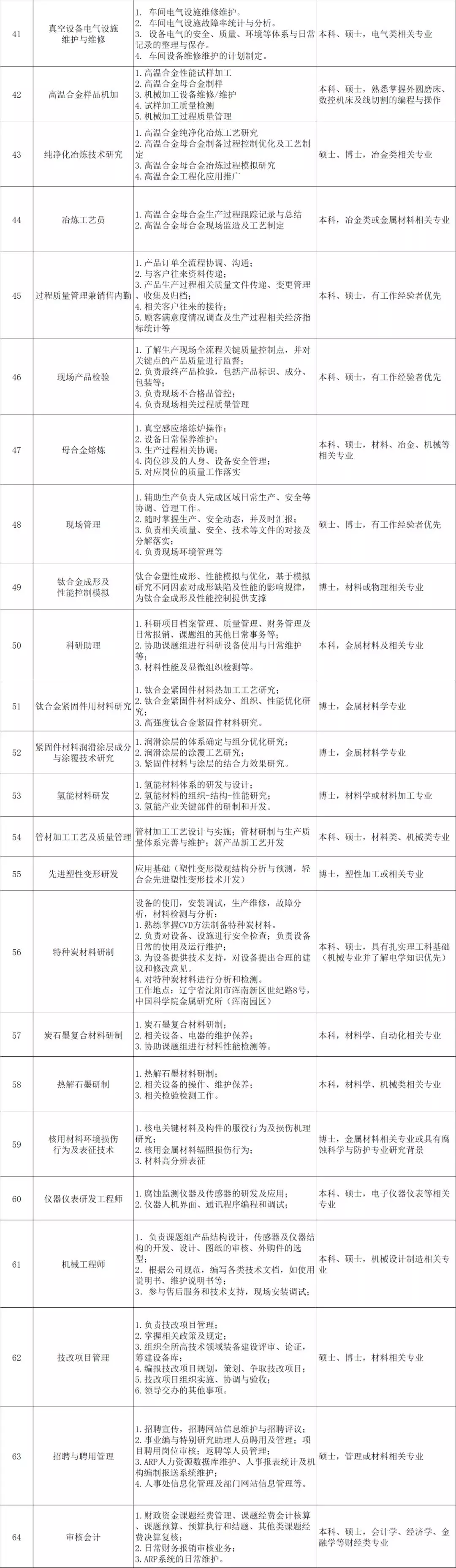 金属研究所现有材料科学与工程一级学科博士研究生培养点、硕士研究生培养点,现有博士、硕士研究生1000余人。同时,还设有材料科学与工程一级学科博士后流动站。2015年,金属研究所携手中国科技技术大学开始共建中国科学技术大学材料科学与工程学院。