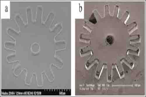 采用非晶合金精确成型的尺寸为几百微米的齿轮(1微米=10-6米)