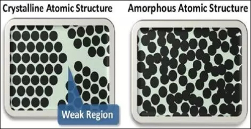 液态金属,也称非晶合金或金属玻璃,是一种新型的金属合金。液态金属拥有独特的原子结构,其原子排列完全无序,而传统金属材料原子结构则排列有序。