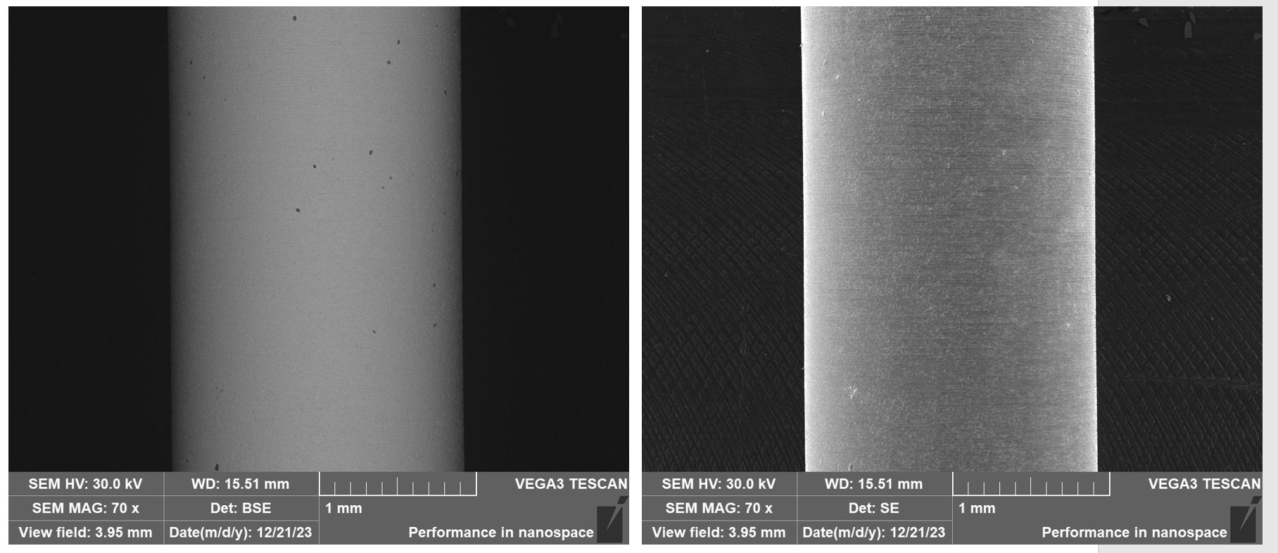 名称 : 涂层刀粒切削8h高碳钢后70倍率SEM
