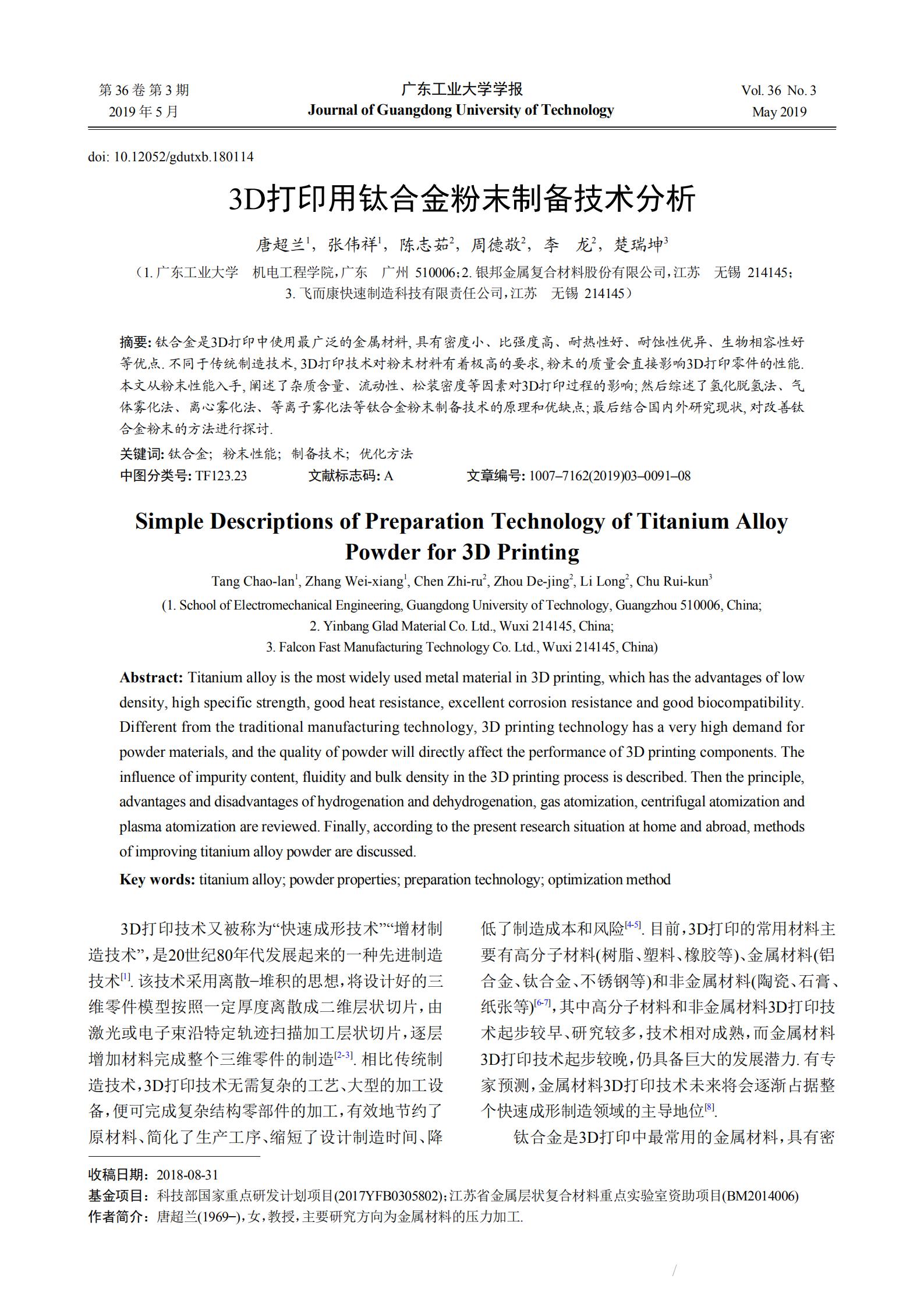摘要 : 钛合金是3D打印中使用最广泛的金属材料,具有密度小、比强度高、耐热性好、耐蚀性优异、生物相容性好等优点.不同于传统制造技术,3D打印技术对粉末材料有着极高的要求,粉末的质量会直接影响3D打印零件的性能本文从粉末性能入手,阐述了杂质含量、流动性、松装密度等因素对3D打印过程的影响;然后综述了氢化脱氢法、气体雾化法、离心雾化法、等离子雾化法等钛合金粉末制备技术的原理和优缺点;最后结合国内外研究现状,对改善钛合金粉末的方法进行探讨.