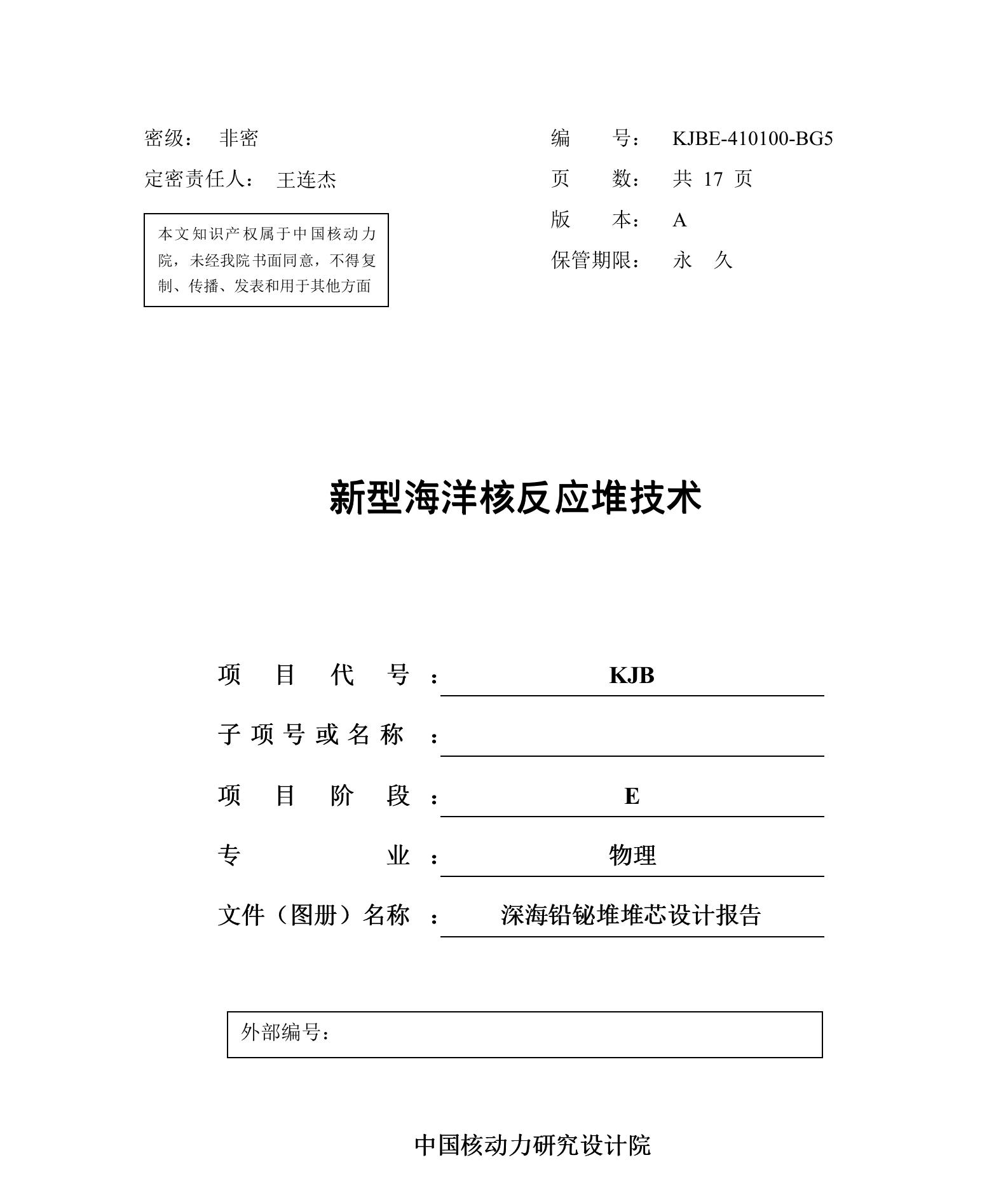 本报告给出了1.5MWt深海铅铋堆堆芯快谱和热谱两种设计方案,两种方案的堆芯轴向、径向尺寸、燃料棒设计、反射层设计、燃料富集度等参数均相同,仅在热谱方案中采用一定数量的慢化棒替换燃料棒以软化中子能谱:快谱方案的堆芯铀总装量为98.7kg,235U装量为83.9kg;热谱方案的堆芯铀总装量为76.4kg,235U装量为67.2kg;快谱方案、热谱方案的堆芯寿期分别为1880EFPD、1930EFPD,均满足功率寿期要求;快谱方案、热谱方案的堆芯总的反应性温度系数分别为-1.410pcm/℃、-1.608pcm/℃,均满足负反馈要求。