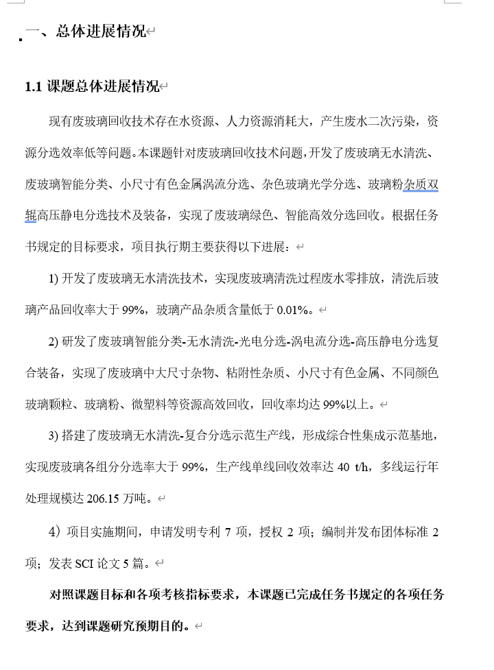 现有废玻璃回收技术存在水资源、人力资源消耗大,产生废水二次污染,资源分选效率低等问题。本课题针对废玻璃回收技术问题,开发了废玻璃无水清洗、废玻璃智能分类、小尺寸有色金属涡流分选、杂色玻璃光学分选、玻璃粉杂质双辊高压静电分选技术及装备,实现了废玻璃绿色、智能高效分选回收。