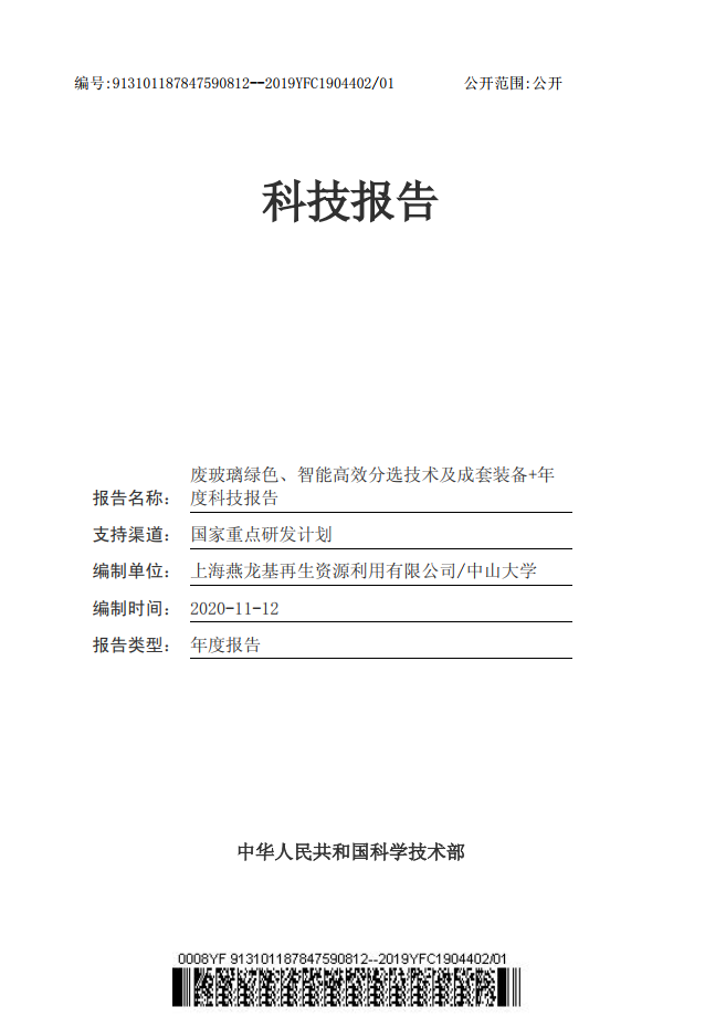本报告深入分析了国内外废玻璃分拣及清洗技术存在的不足,研究了废玻璃图像信号采集与机器人智能分拣技术,开发了废玻璃热场-撞击研磨无水清洗技术研发。完成的工作如下:(1) 借助计算机视觉技术对废玻璃中不同形状因素的物料进行识别,通过对计算机卷积神经网络的特殊性训练,获取废玻璃中不同物料的图像信息数据;在计算机获得废玻璃图像信息后,研究了机器人手臂的转移、定位、夹取等运动过程,实现废玻璃中不同物料的分拣,形成了废玻璃图像识别智能分类技术1项,相关装备2件。(2)研发了低温流化旋转的系统,在一定温度下使破碎废玻璃标签/污渍干化、脱粘,利用流化旋转产生的玻璃颗粒自旋撞击/研磨作用,使标签/污渍从玻璃颗粒表面脱离;同时采用气流分选的方法,将清洗过程中脱离的标签、污渍进行同步分离,形成废玻璃无水清洗技术1项,相关装备1件。研究成果对废玻璃绿色智能分选技术及装备的研究提供了理论、技术、装备基础。