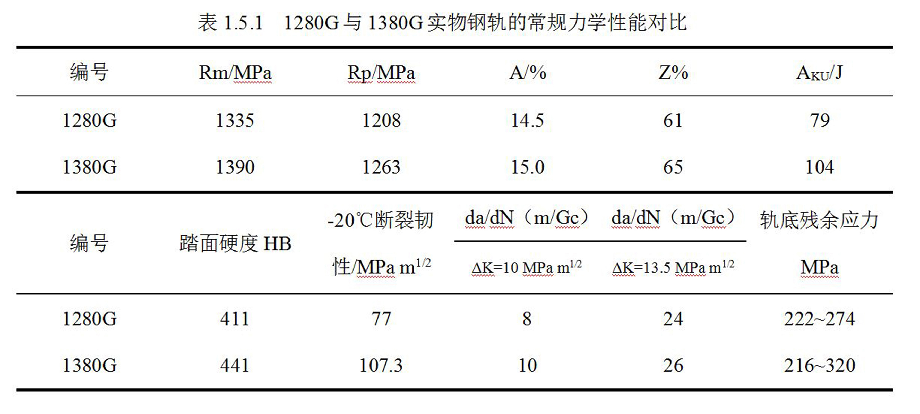 英文名称 : Comparison of conventional mechanical properties between 1280G and 1380G physical rails