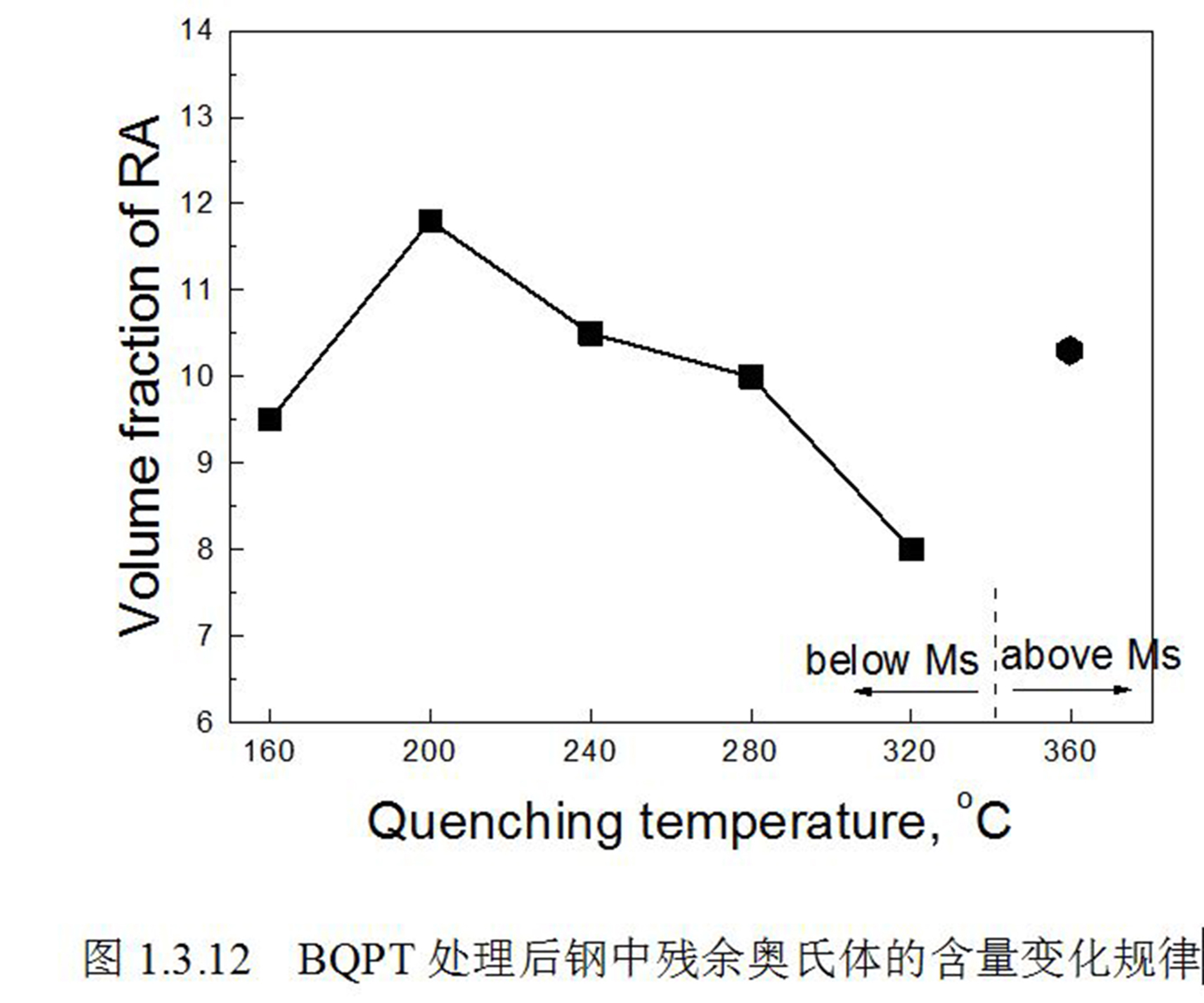 说明 : 描述了经过BQPT处理后,钢中残余奥氏体的含量变化规律。