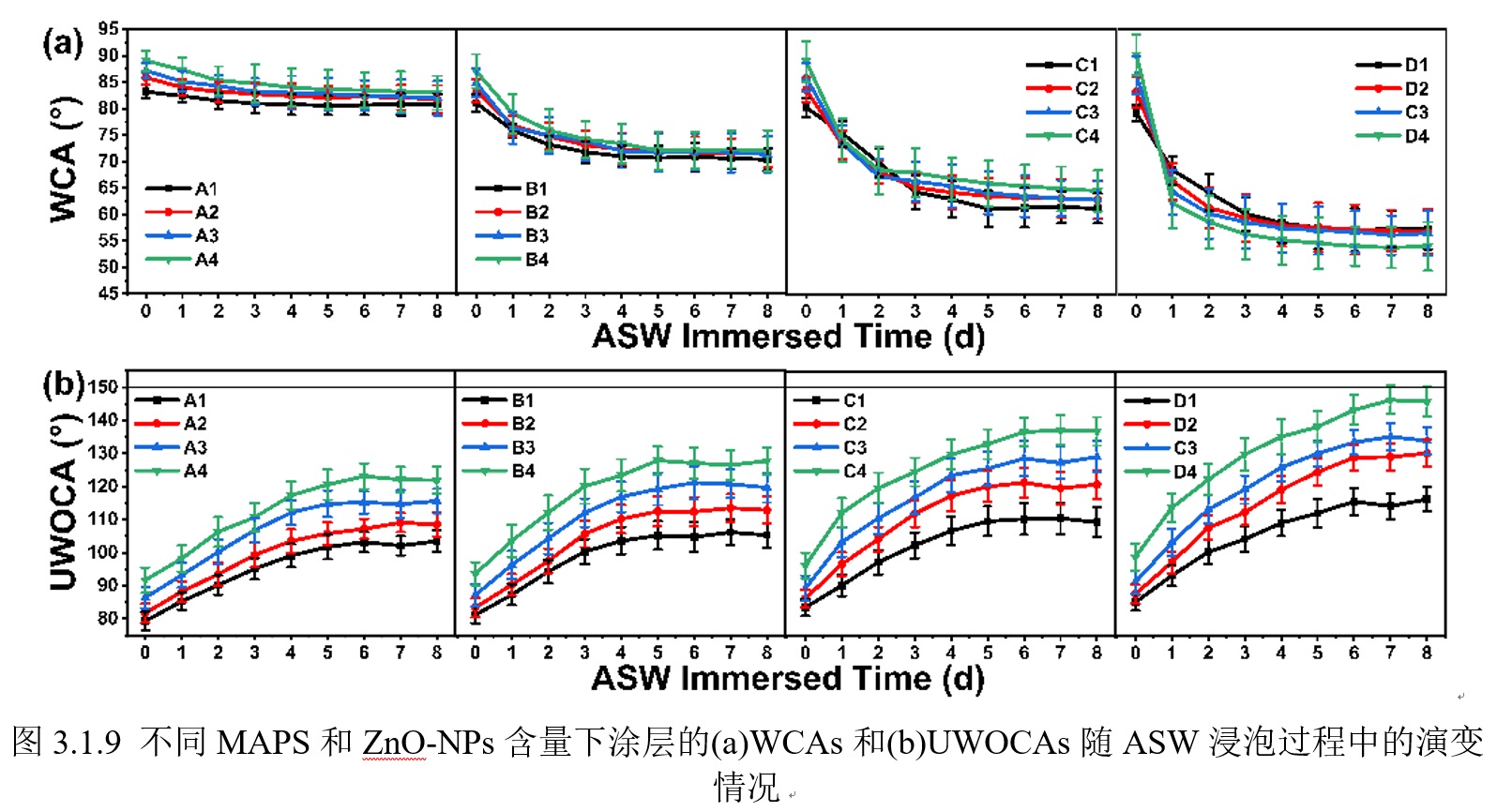英文说明 : The coatings were prepared by mixing MAPS, nano-ZnO, and moisture-curable polyacrylate. The pencil hardness and abrasion resistance of coatings are included in this report.