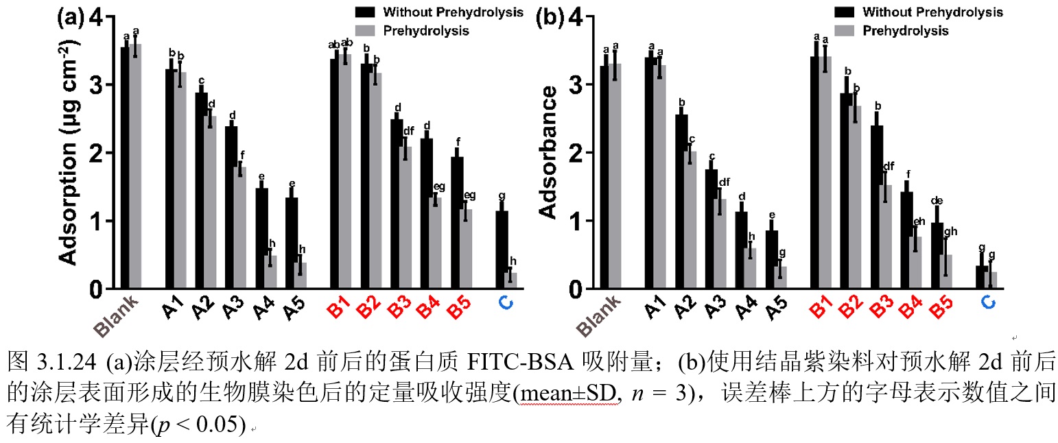 该涂层由TEOS与MAPS预水解形成的两性离子溶胶(h-MAPS)、催化剂和羟基硅油(两种粘度)复合而成。本报告为涂层的蛋白质粘附l量以及结晶紫对涂层表面生物膜的吸附数据。