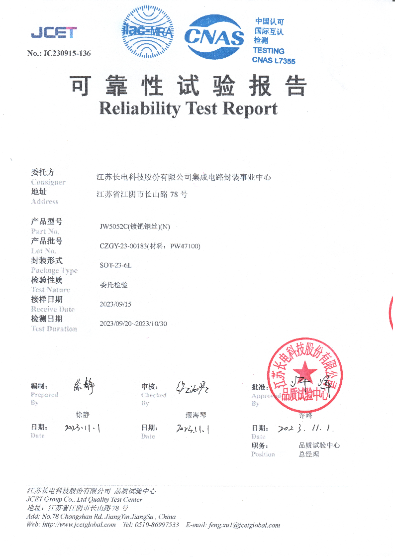 实验单位 : 江苏长电科技股份有限公司品质试验中心