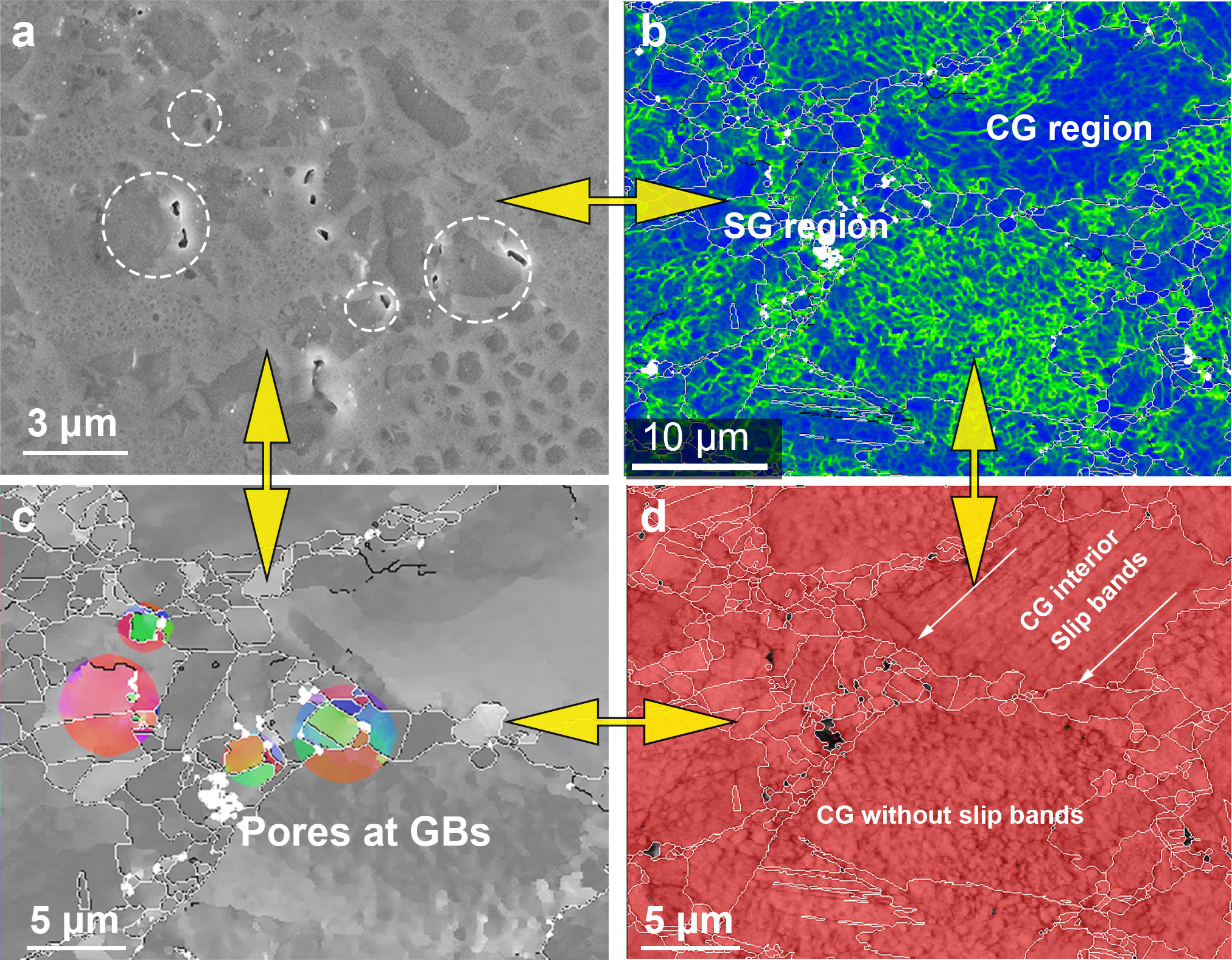 Taking the optimized high-oxygen content FGH96 alloy after creep as the research object, the microstructure near the fracture surface was observed by SEM, and the nucleation position of creep holes was analyzed. Analyze the relationship between creep pore nucleation and grains in combination with EBSD.