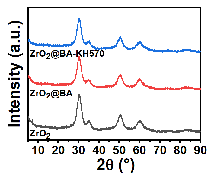 说明 : 制备氧化锆后,对其进行改性,改性前后的XRD对比图