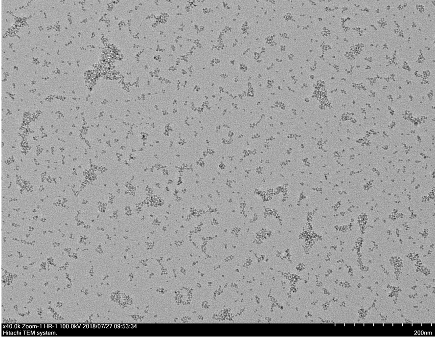 经碱式过氧化氢(AHP法)处理的ZrO2纳米颗粒在200 nm尺度条件下的TEM图像,可以看出纳米氧化锆颗粒在大范围内呈单分散球状,表明AHP处理可以对ZrO2 纳米颗粒表面进行再改性