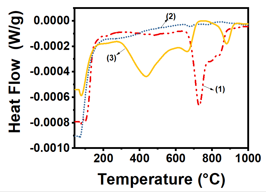 英文说明 : Thermogravimetric properties of ZrO2 powders at different stages:(1) untreated ZrO2, (2) AHP-treated ZrO2 before acid treatment, and (3) AHP-treated ZrO2 after acid treatment.