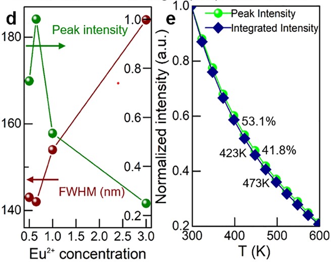说明 : Eu含量升高LaSr氮氧化物发光强度升高