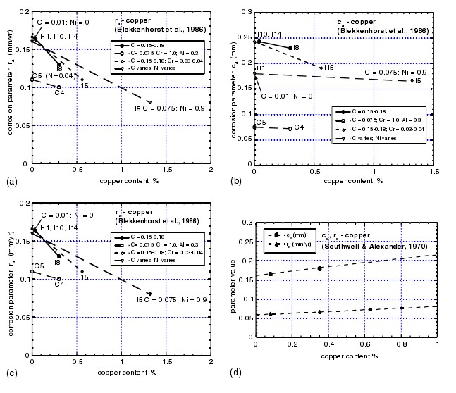 图5a与5b表明Al的增加显著减小了腐蚀参数r0与ca,当Al的含量为(0-1.5%)这被r0的近似值得到证明。正如数据显示影响作用非线性,尽管还没有确切理论来解释。没有专门的数据显示cs与rs的变化,但是ra足以表明厌氧环境下,随着Al含量的增加耐腐蚀性有所下降。