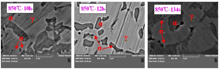 (2) 850℃保温时,随着保温时间的增加,σ相析出增多,10h左右达到饱和。