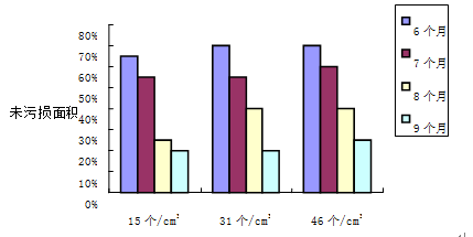 图7所示是分别用少量铜和锌吸附改性后的电气石对其防污涂层防污性能的影响。由图示结果可看出:电气石粉体经铜吸附改性后,其防污性能较未经改性的电气石有明显提高;而经锌吸附改性后的电气石粉体的防污性能较未改性粉体却有明显下降。推测其原因可能是由于锌一般是作为氧化亚铜的辅助防污剂添加在涂料中,没有铜存在的情况下,吸附在电气石表面的锌反而降低了电气石负离子的产生。#p#副标题#e#